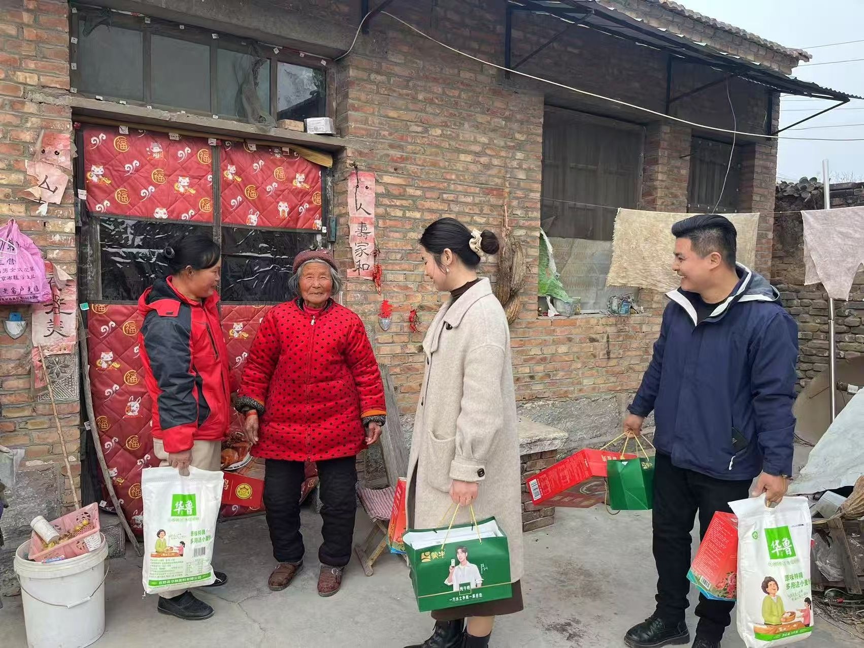 公司員工們帶著精心準(zhǔn)備的牛奶、燒雞、米、面等生活物資來到程莊。每到一戶,大家都與老人們親切交流,仔細(xì)詢問他們的日常生活和身體狀況,傾聽他們的需求,為他們送上新春的祝福。老人們收到慰問品后,臉上綻放出幸福的笑容,對公司的善舉表達(dá)了誠摯的感謝。這些慰問物資不僅能解決他們生活中的實際困難,更讓他們在寒冬中感受到了濃濃的暖意。